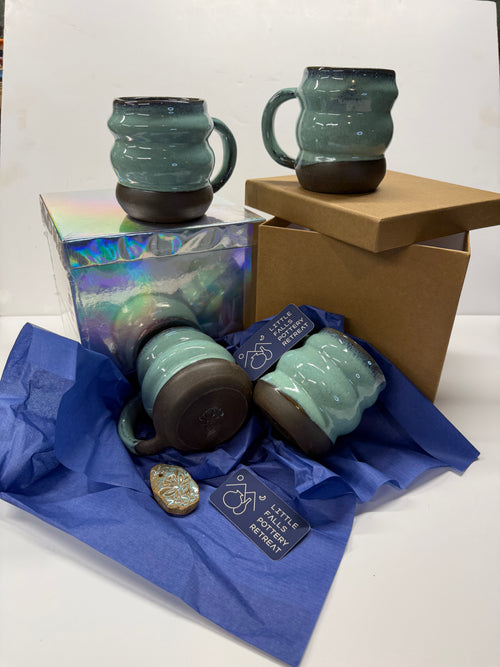 Item 0001 : Stoneware Mugs in Pangaea Mint Glaze- stunners!
